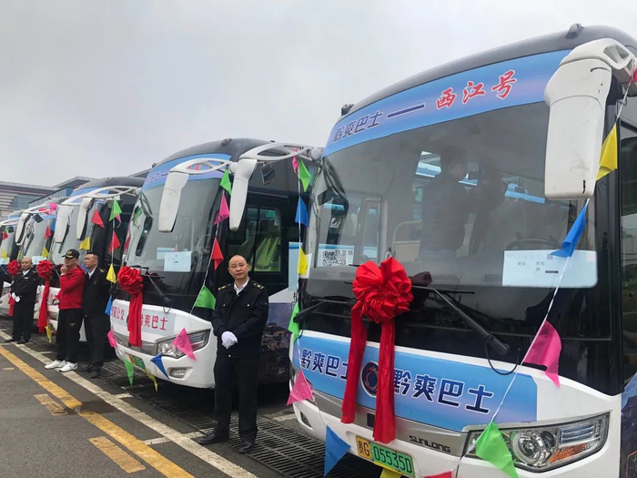 “黔爽巴士西江号”景区直通车由贵阳公交黔爽巴士与西江千户苗寨文化旅游发展有限公司联合推出,共有五条线路,分别从贵阳火车站、贵阳北站、花果园兰花广场、贵大西校区、花溪大学城5个站点发车。