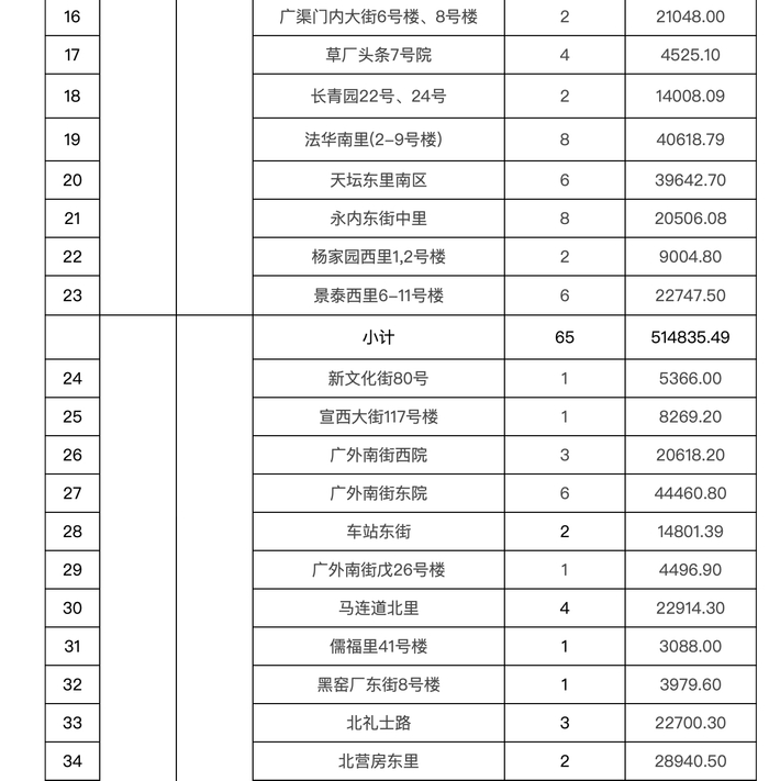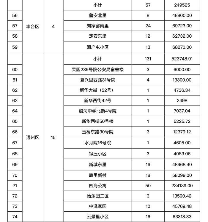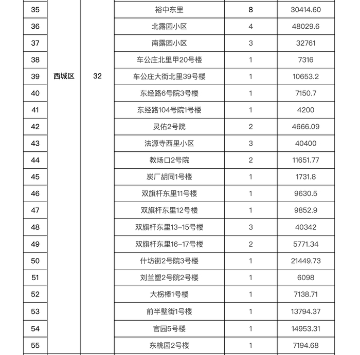 分区来看,北京日报客户端记者梳理发现,7个区中,大兴区纳入综合整治名单的老旧小区最多,共有52个;其次是西城区,有32个老旧小区纳入综合整治名单;东城区、丰台区、通州区、昌平区、密云区则分别有23个、4个、15个、24个、8个。