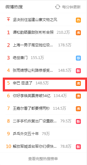 #辛巴臣退了#话题在10日突然登上微博热搜,并在下午四点左右热度飙升。截至发稿,该话题阅读量超过6700万,讨论次数2.9万。