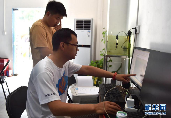 4月8日,在广西涠洲岛珊瑚馆办公室,黄雯指导学生进行珊瑚修复相关课题调研
