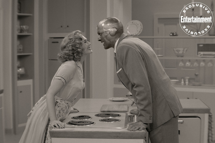 旺达与幻视这对恋人此前是漫威电影宇宙的二线角色。在漫画中,旺达是能够用意念改变现实的绯红女巫,幻视是人工智能机器人。它们首次在电影宇宙中登场是在2015年的《复仇者联盟2:奥创纪元》。在《复仇者联盟3》中,幻视死于灭霸之手。剧集《旺达幻视》设定在《复仇者联盟4》之后,二人以一对新婚夫妇的身份出现在美国西景小镇,拥有了一对可爱的孩子,过上了幸福的家庭生活。实际上,这是痛失伴侣之后的旺达用自己的超能力创造的幻想世界,是她用超能力控制小镇平民而换来的短暂美好。在故事的最后,旺达终于觉醒了,成长为真正的绯红女巫。