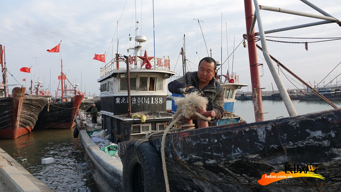 在秦皇岛市北戴河新区新开口码头,许多渔船已经停泊靠岸。