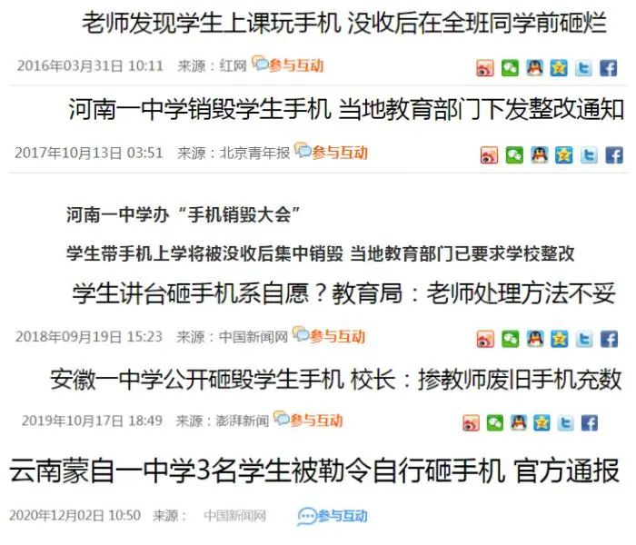 其实,为起到警示作用而毁坏学生手机在国内初高中并非第一次。