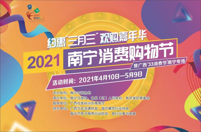 “三月三”目前已经是广西的特色节庆品牌,近日,由南宁市商务局主办,南宁日报社、各县(区)人民政府、各开发区管委会承办,广西汽车流通协会、南宁餐饮行业协会、南宁市电子商务行业协会、各行业参与商家协力的2021南宁消费购物节已强势来袭。
