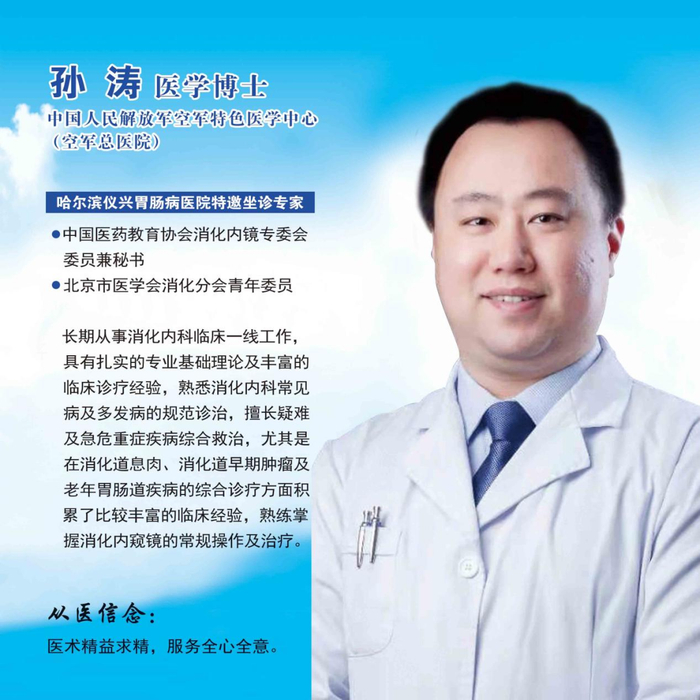现代人生活节奏快,作息饮食不规律,很多人都受到胃肠疾病的侵害,为了帮助百姓摆脱胃肠疾病困扰,4月17日,哈尔滨仪兴医院特邀北京空军总医院消化内科孙涛来我市亲诊,胃肠病患者及家属可电话预约挂号,无需排队等待,就能享受北京名院胃肠医生的诊疗服务。