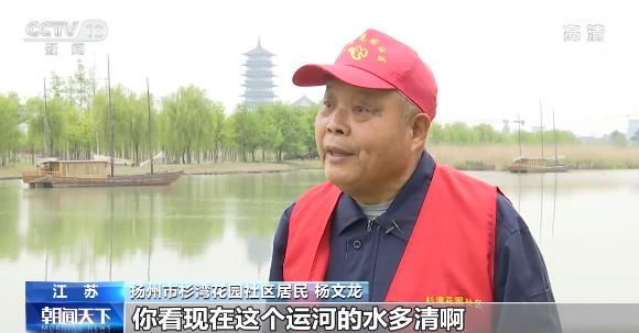 江苏扬州杉湾花园社区居民 杨文龙:现在可以说是翻天覆地的变化,你看现在这个运河的水多清啊,现在的鸟类也朝这个地方飞了,像现在春天到了,来游玩的时候都觉得心旷神怡。