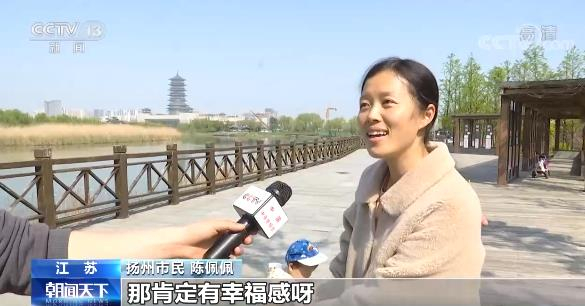 江苏扬州市民 陈佩佩:那肯定有幸福感呀,出门就可以逛公园,对不对。风景比较好,然后设施也比较完善,管理的人也比较多,所以这些风景都维持得比较好一点。