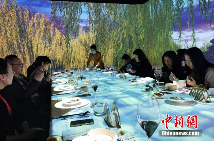 中新网4月14日电 近日,全聚德前门店光影餐厅正式开放预订。据悉,该餐厅是全聚德起源店前门店打造的一间沉浸式光影餐厅,也是中华老字号首家全息投影体验餐厅。