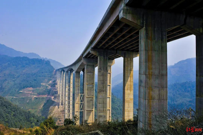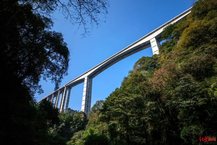 还值得一提的是,全线桥梁多达278座,穿越的地震带最高烈度达9度。腊八斤大桥主桥上部结构采用连续钢构桥,桥梁高度271米,最大墩高182.5米,至今仍为“世界第一高墩”。钢混组合结构桥梁轻质高强,抗震性能高,同时又节约资源。