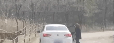 近日,有网友拍到一名女游客在北京八达岭野生动物园猛兽区下车。
