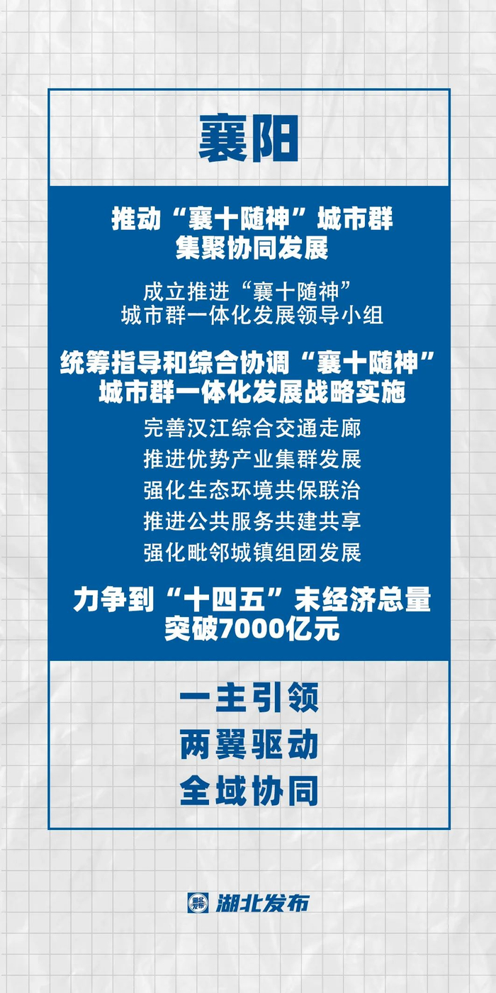 加快“一极两中心”高质量发展,推动“襄十随神”城市群集聚协同发展。