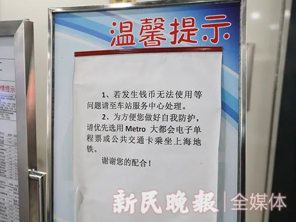 地铁自助售票机旁的温馨提示。新民晚报记者王凯摄