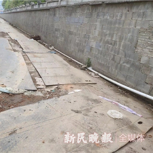 图说:这段50米左右的小路上铺满钢板 新民晚报记者 徐驰 摄