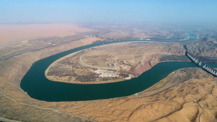 黄河流经宁夏中卫市沙坡头水利枢纽工程。初春时节,黄河宁夏段河水清澈、碧波荡漾。王鹏摄(新华社)