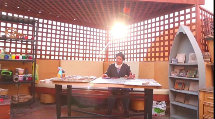 她叫加达·穆斯塔法,一名埃及雕刻家。自家屋顶的露天工作室,镂空顶棚过滤出光影,身后高高低低的木架摆放了数百种美工用品。
