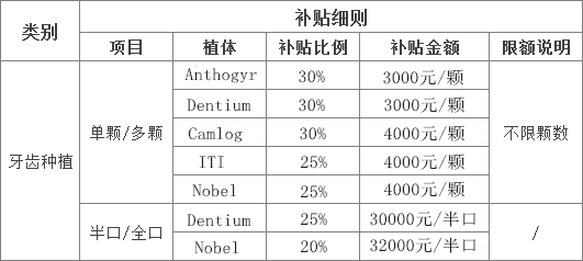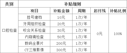 针对非医保报销范围的以下口腔项目:①单颗牙缺失、多颗牙缺失、半口无牙、全口无牙;②牙齿松动、残根、残冠及烤瓷牙损坏;③牙齿不齐、牙列拥挤、牙间隙大、前牙反颌、前牙深覆盖等,提供看牙专项补贴。