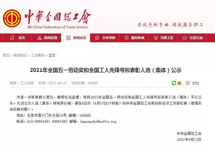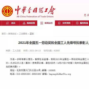 中华全国总工会日前发布《2021年全国五一劳动奖和全国工人先锋号拟表彰人选(集体)公示》,其中河南省多名个人和集体上榜。