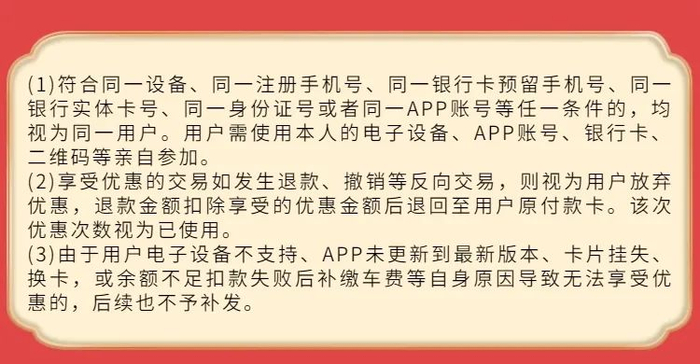 注:每次乘车最多核销1张公交优惠券,多张票券不可叠加使用;