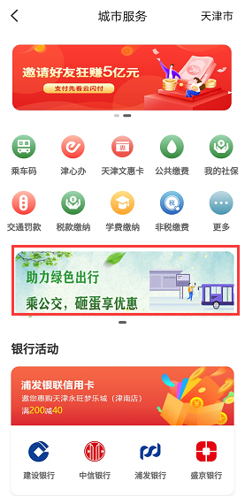 注册并绑定62开头银联卡的云闪付APP用户,登录云闪付APP,点击城市服务——“助力绿色出行 乘公交,砸蛋享优惠”或选择本地专区——“惠聚津门,豪礼大放送”,通过砸金蛋方式进行抽奖,随机获赠公交优惠券1张。