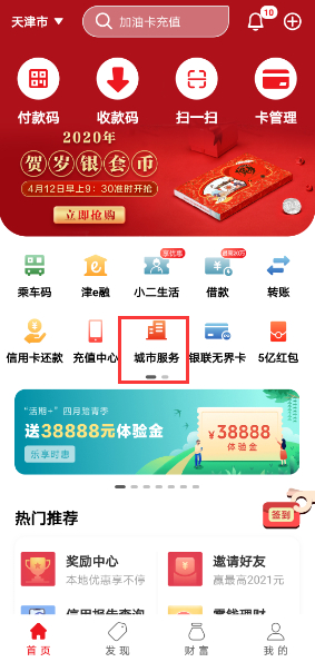 ①打开云闪付APP,于首页点击【城市服务】
