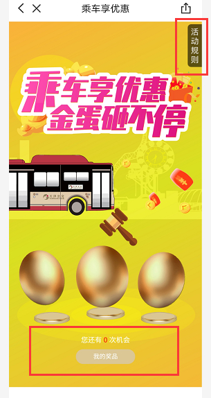 活动期间,云闪付APP乘车码用户可享抽奖(砸金蛋方式)送公交优惠券活动。单用户单日可参与抽奖1次,中奖1次。