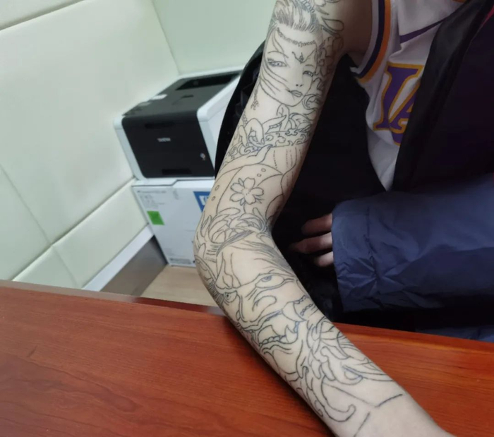 该案随后移送沭阳县检察院审查逮捕,该院副检察长叶梅承办此案。她发现,小克手臂和胸前有大面积黑白无常文身图案,面目狰狞的墨色图案与其稚气未脱的面孔显得格格不入。而案件中涉及的其他十几名未成年人身上也都有不同程度的文身。在进一步梳理了近三年办理的未成年人涉罪案件后,该院发现约有100多名涉案未成年人身上都有文身图案。