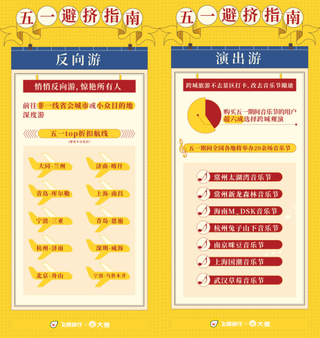 五一长假将至,国内游即将重现久违的“人从众”,去哪里玩能躲避人山人海?飞猪联合大麦近日发布出游指南:夜间游、租车游、反向游有助避挤,二线城市出发航班成本低。同时,演出游考古游时下正潮,文旅结合让大家玩着就能长知识。值得注意的是,贵阳成为十大租车游热门目的地之一。