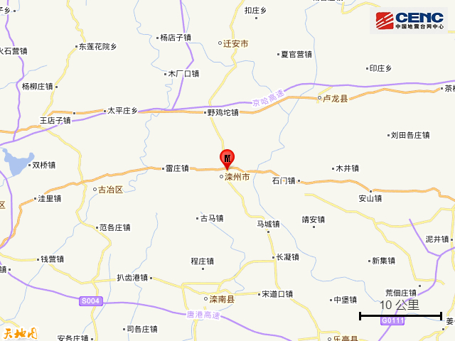 附近村镇:本次地震周边5公里内的村庄有米家、葛坎村、毛庄村、军营村、西高坎村、张坎村、北双山村、吴坎村、兰庄村、西坨子头村,20公里内的乡镇有滦州镇、东安各庄镇、雷庄镇、滦州车镇、油榨镇、樊各庄乡、野鸡坨镇、古马镇、马庄子乡。