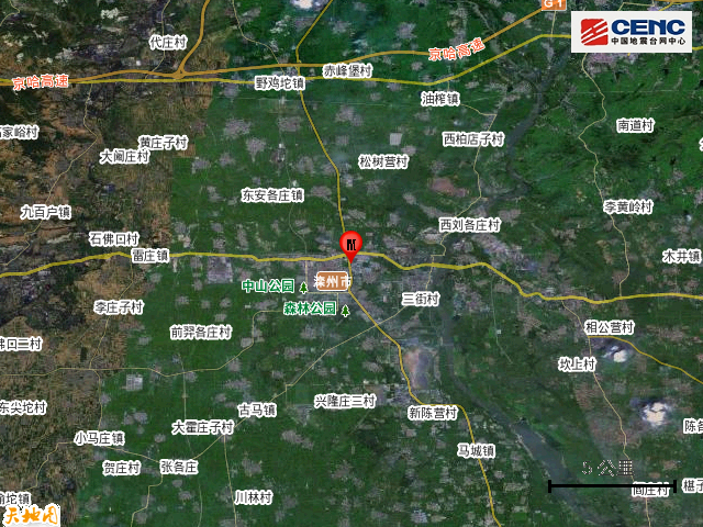 震中地形:震中5公里范围内平均海拔约44米。