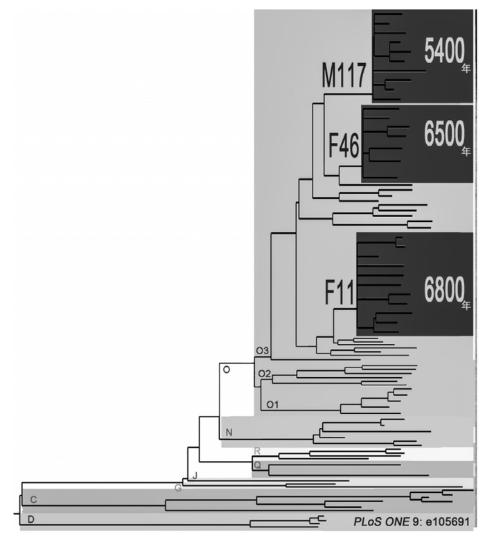 茶也好,经络也罢,这些看似和分子人类学无关的东西,其实最后都指向李辉正在做的中华文明起源研究。他分析中国男性的Y染色体,根据序列差异程度画成一棵进化树后发现,上面有三个节点,各有很多分叉,“这说明节点上这三个男人生了很多男孩”。他还注意到,中国不管什么民族,大约一半人都是这些人的后代。