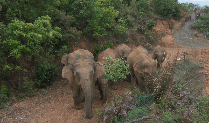 因野象具有较强的攻击性,易造成人员伤亡及财产损失,请周边的居民群众做好安全防范。