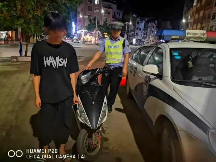 依法暂扣违法“鬼火”摩托车后,大队民警考虑到这些未成年人家住得都比较远,深夜回家不安全,在作出教育处罚后用警车将这几名未成年人送回到他们家属身边,并将其飙车交通违法行为通报了他们学校校长。