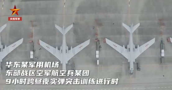 东部战区空军航空兵数十架轰6战机进行实弹突击训练。