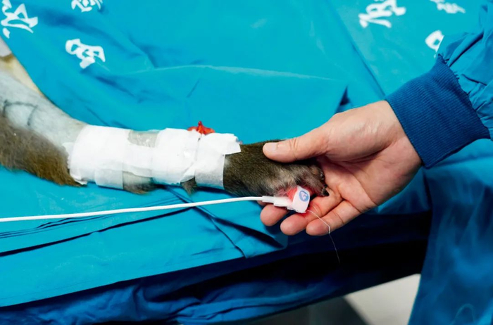 2020年6月,陕西一家医院以恒河猴进行内脏器官移植实验。图/新华