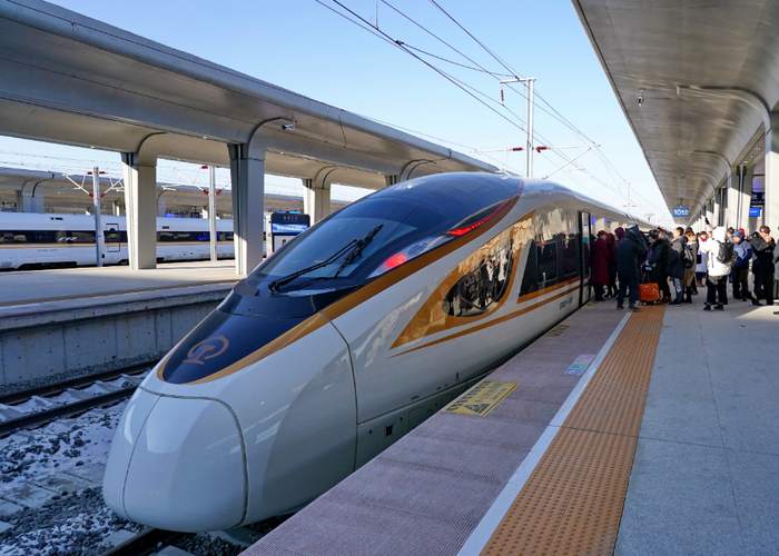 2019年12月30日,G2505次列车停靠京张高铁张家口站。当日,北京至张家口高速铁路开通运营,崇礼铁路同步通车。杨世尧摄(新华社)