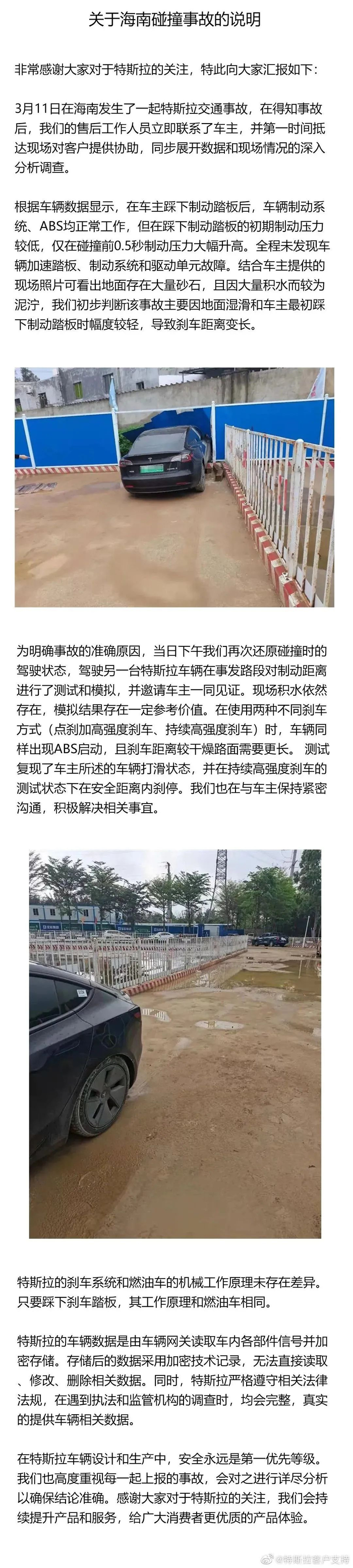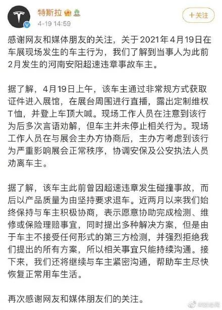 3月10日,特斯拉客户支持官方微博发布了关于河南安阳车主维权事件的说明,公布了该事件的具体发生经过。