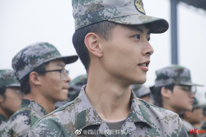 据了解,今年24岁的王康力原本就读于成都一高校航空物流专业,因为从小的梦想是当飞行员,因此在校时便参军入伍,2018年退伍;目前是成华区综合实践素质教育活动中心一名兼职军训教官,曾参与辖区内公办学校的社会实践、国防教育、以及中学生的军训活动。而每到一所学校,他的颜值都会给他带来一众“粉丝”,用他的战友、总教练王明翼的话来说,“因为颜值特别高,小王教官所到之处很受欢迎”。王明翼说,其他教官们偶尔还有点小小的“吃醋”,有点被冷落的感觉,“但(大家)想着能够给学生在生活、训练方面带来影响,还是觉得高兴”。