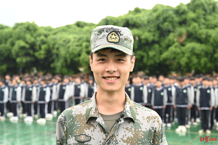 红星新闻记者了解到,这个小王教官名叫王康力,今年24岁,2018年退伍,目前是成华区综合实践素质教育活动中心一名兼职军训教官。他说,自己从小的梦想是当飞行员,但因家庭原因未能如愿。后来,他参军入伍,军营生活也弥补了自己的一些缺憾,“让我体会到了自律的生活”。现在,他选择做教官,除了学生们很可爱以外,也是想继续体验军营生活。