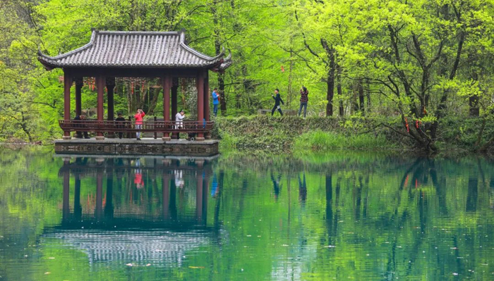 游客在浙江省杭州市临安区天目山景区内踏青赏花。胡剑欢摄(中经视觉)