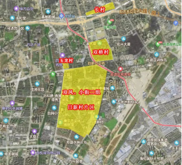 早在2019年12月,昆明市自然资源和规划局就发布了“官渡区日新路以南片区(含双桥村、长村、高家村、玉龙村)三旧改造连片开发项目土地调查及房屋初步调查项目公开招标公告”。