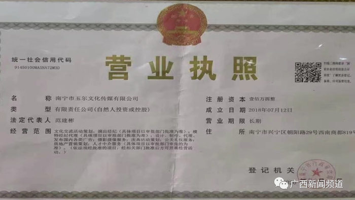 为核实小李反映的情况,记者先在同一家招聘网站上查询,没有找到涉事“玉尔摄影工作室”,但是却找到了一家名为“非凡摄影工作室”的招聘信息,巧合的是,两家工作室营业执照上的经营场所相同,都是在南宁市西南商都819房间,且字号名称都是2018年7月成立的南宁市玉尔文化传媒有限公司。