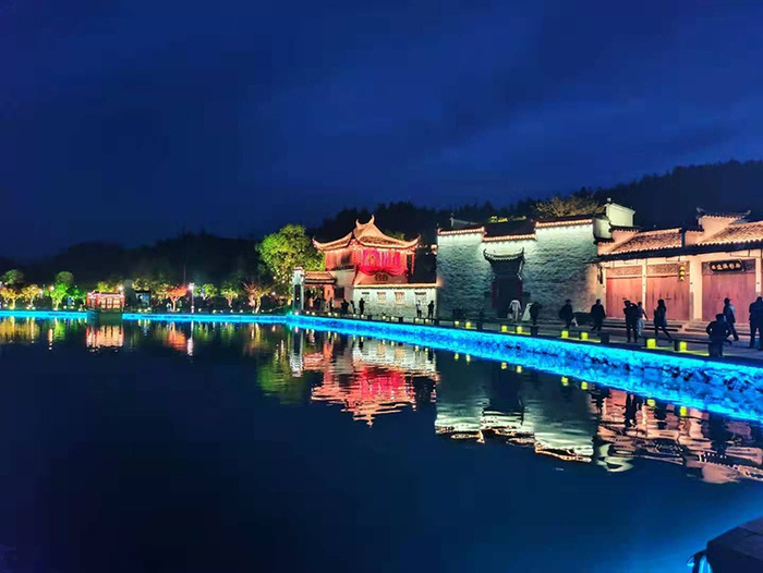 于村落中穿行,恍若翻阅一部历史大作。而晚餐后的“西递水幕演艺光景秀”,更是将这种感觉推上顶点。只见白墙黛瓦之间,形态各异的水柱、水雾、水球,和着灯光、音乐,在如画的夜空中翩然起舞……“古风雅韵,民俗人情,山高水秀,可谓叹为观止!”来自徐州的一位自驾游客连称“西递,名不虚传!”