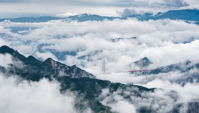 乌蒙山峭壁耸立,北盘江蜿蜒其中,地险天成。位于六盘水市境内的世界第一高桥——北盘江大桥,既是山间令人惊叹的一道风景,又是山里人安全外出的一条“天路”。