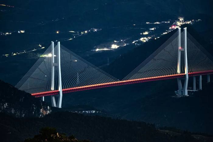 夜幕下的北盘江大桥。