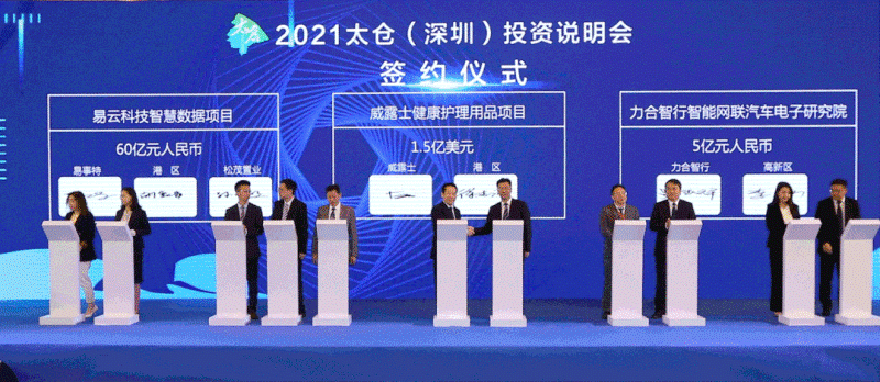 4月20日下午,2021太仓(深圳)投资说明会在深圳举行,共有22个项目签约,投资总额279.6亿元。太仓市委副书记、市长汪香元,市委副书记胡卫江,市领导徐志强、王红星、许超震,以及来自大湾区等地200余家企业的嘉宾参加投资说明会。