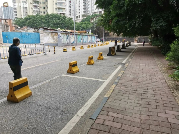 海珠区同福中路为单行车道,车行道宽仅为11米,附近有南武中学、同福中路第一小学、海珠区少年宫等多所学校,人流量较多。此前,该路段两旁均设有路边泊位,一到出行高峰,极易出现拥堵。