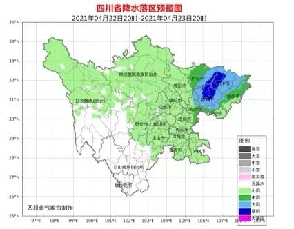 22日晚上到23日白天:盆地各市阴天有阵雨或雷雨,其中广元、巴中、达州、南充、广安5市有中到大雨,局部暴雨;川西高原北部多云间阴天,部分地方有阵雨,川西高原其余地方和攀西地区晴间多云。