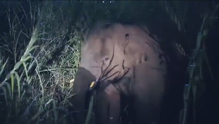 当天23点,工作人员用无人机监测到了独象身影,迅速通知、撤离附近农地里面居住的群众,并发布亚洲象预警。