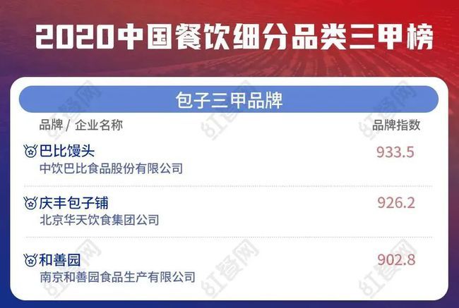 8月份,“2020中国餐饮细分品类三甲品牌”榜单发布,榜单对包子品类进行了梳理,发现了不少优质品牌。其中,巴比馒头、庆丰包子、和善园登榜前三甲。而榜单之外,天津的狗不理、南京的青露、杭州的甘其食等也在各自的区域市场里稳定发展。