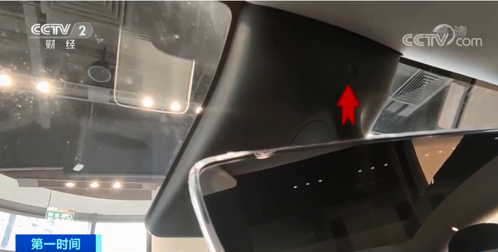 安装了车内摄像头的仅仅特斯拉一家吗?记者在上海探访了蔚来、小鹏等多家汽车销售门店,均发现了车内摄像头,小鹏P7的车内摄像头就位于方向盘上方。